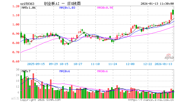1月13日,截止午间收盘,创业板人工智能ETF华宝(159363)跌2.04%,报1.104元,成交额9.64亿元。创业板人工智能ETF华宝(159363)重仓股方面,中际旭创截止午盘跌0.68%,新易盛跌1.91%,天孚通信跌5.96%,协创数据跌0.64%,软通动力跌1.95%,全志科技跌3.32%,凤凰彩票app下载深信服涨1.32%,北京君正跌3.93%,中科创达涨0.93%,景嘉微跌2.70%。