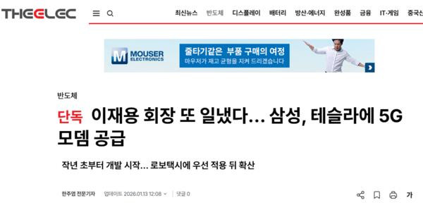 {jz:field.toptypename/}据CNMO了解,车载5G调制解调器供应合作始于2023年5月,三星电子会长李在镕与特斯拉CEO埃隆·马斯克在美国硅谷的三星北美半导体研究所会面。当时,双方广泛讨论了自动驾驶AI芯片、车载通信部件等领域的合作。