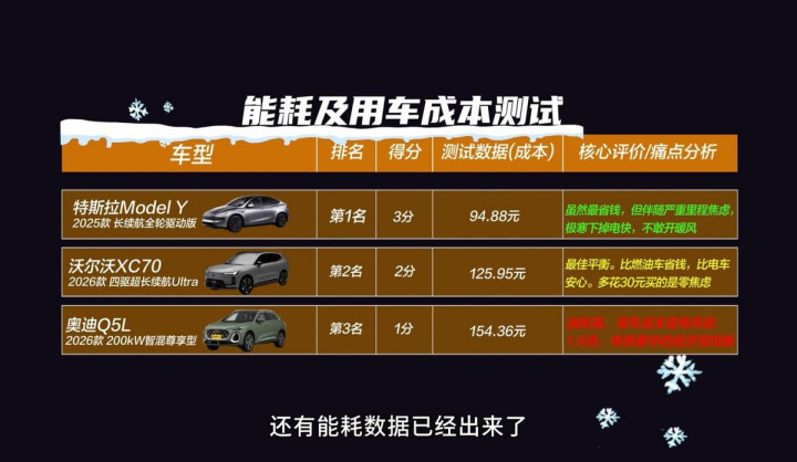 终末在极寒环境下的能耗及用车老本形状中,沃尔沃全新XC70搭载的电板包可以已毕200公里以上的纯电续航,而它的四擎四驱系统有7种无感责任模式切换,在市区说念路中是纯电驱动已毕节能,高速路上它的发动机也会介入,保证车辆能源的同期也已毕更好的经济性,200公里测试中仅比纯电车Model Y(老本94.88元)多了30块(沃尔沃全新XC70老本125.95元)傍边。