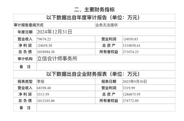 财务数据显示,2024年及2025年前三季度,木里河公司实现营收分别为7.97亿元、6.84亿元,净利润-2.47亿元、3313.59万元。截至2025年9月底,公司总资产为128.69亿元,总负债为101.21亿元,所有者权益为27.48亿元。