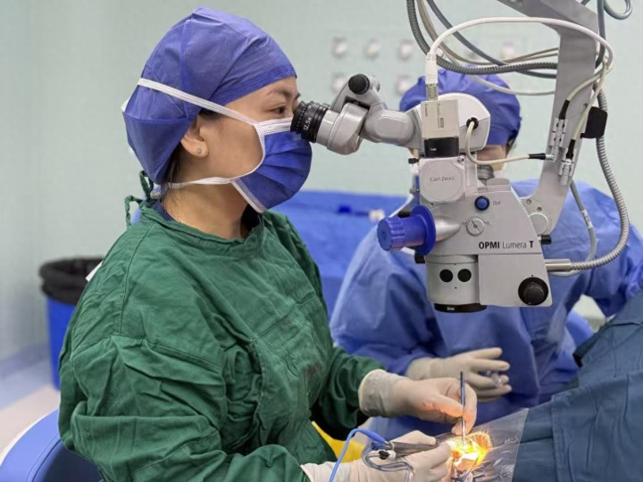 据悉,角膜中央的斑翳,不仅会影响术前人工晶体参数的计量,还会在手术中遮挡医生视野,导致医生难以清晰观察白内障细节及手术器械操作情况,只能依靠临床经验、手感及肌肉记忆完成手术,严重情况夏甚至等于是“盲操作”,凤凰彩票官网app大幅度增加手术难度与风险。为此,医院白内障与老视专科专家团队开展会诊,最终为郭先生制定了个性化手术方案,并由周莉主任带领团队亲自主刀。