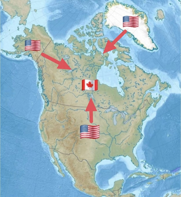在加拿大的西北是阿拉斯加洲,东北就是格陵兰岛,整个南部都和美接壤,从地图上看,加拿大被三面夹击,三个地方形成了一个稳固的三角位,虽然加拿大西边、东边和北边都沿海,看似四通八达,其实在东西两侧都是阿拉斯加和格陵兰岛同加拿大南邻居的海上航线,加拿大真正能够“突围”的只有北边的北冰洋。