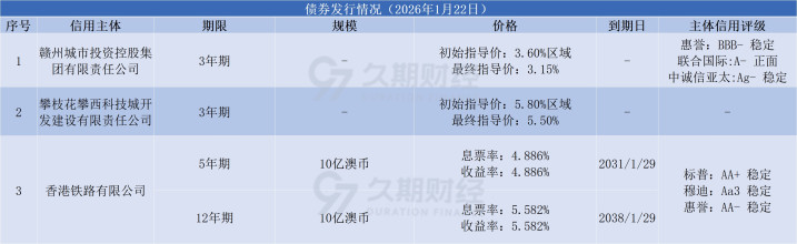 新鸿基公司(00086.HK)发布公告,已接纳购买约1.52亿美元SUNHKC 5 09/07/26,收购要约的结算日预计为2026年1月23日。公司将在结算日向所有有效投标且被接纳购买的票据支付购买价及应计利息。融资条件预计将于结算日或之前获满足。