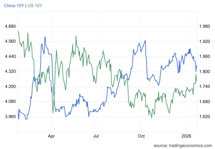截至1月21日,中国二年期国债收益率为1.40%,中国十年期国债收益率为1.83%。