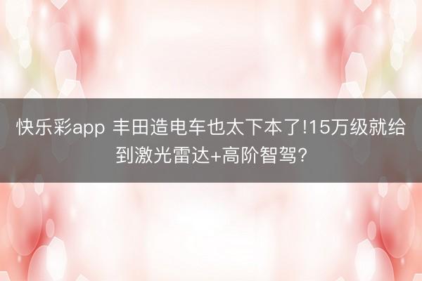 曾几何时,搭伙电车“高价低配”“智能逾期”的标签深远东谈主心,而激光雷达、高阶智驾更是20万以上车型的专属树立。但如今,丰田用实质举止梗阻了这一姿色——旗下bZ5、铂智3X等车型,将激光雷达+高阶智驾...